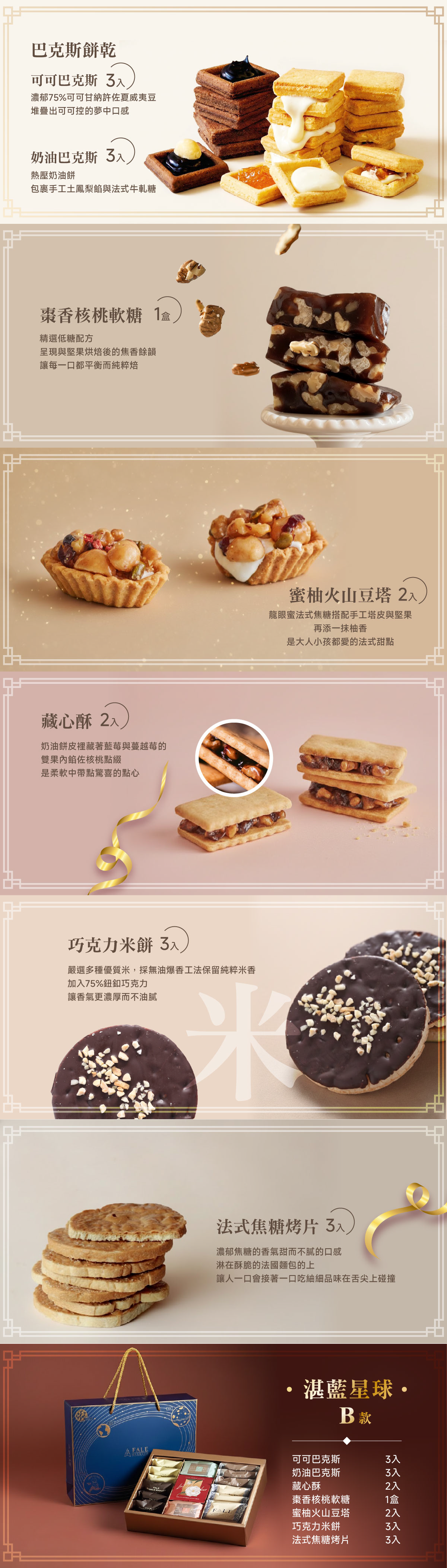 •藏心酥/蜜柚火山豆塔/古典棗香核桃軟糖/巧克力米餅:60天